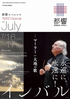 都響今季唯一のマーラーは、インバル指揮の「大地の歌」。第2交響曲「復活」第1楽章の原曲である「葬礼」と、交響曲にして巨大な連作歌曲「大地の歌」という、マーラーの若き日と晩年を彩る異色作の組み合わせです。マエストロからの要請を受け来日する名歌手2人の歌唱とともに、インバルが彫琢するマーラーの肖像をじっくりとご鑑賞ください。