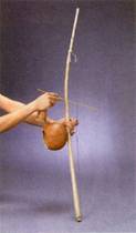 ビリンバウは楽弓の一種に属し、アフリカ大陸で発祥した最古の弦楽器といわれます。大きく弧を描いた木の棒にピンと張られた1本の糸という原始的な楽器です。もとは呪術などに用いられていたのが、やがて黒人とともに海を渡り南米へ伝わったとされる。現在では、ブラジルの格闘技カポエイラの伴奏に欠かせない楽器になっています。